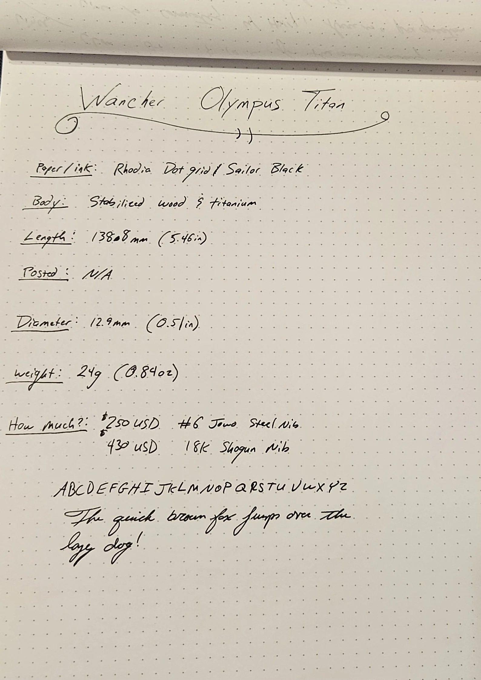 Wancher Olympus Titan Fountain Pen and 18k Shogun Nib Review